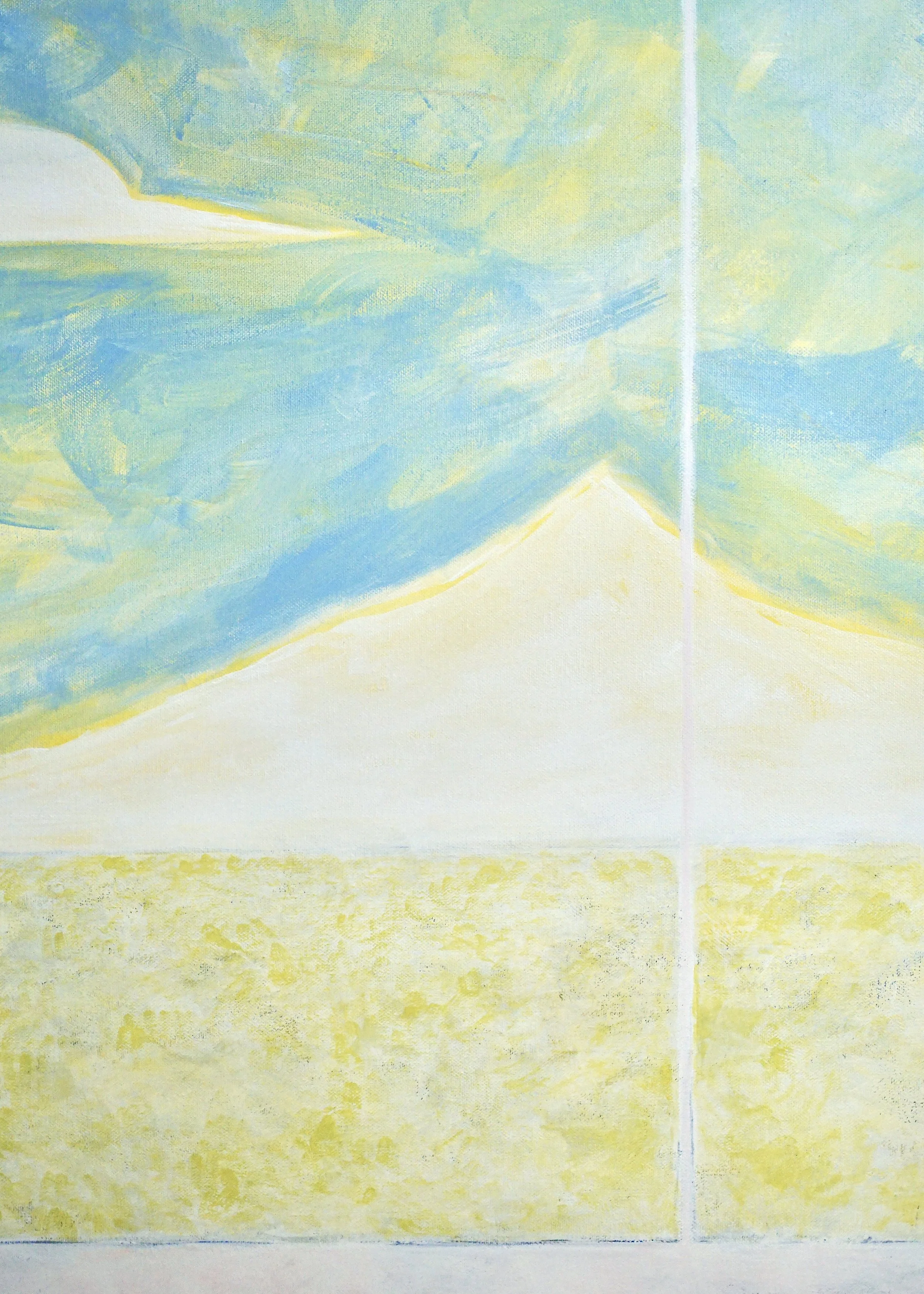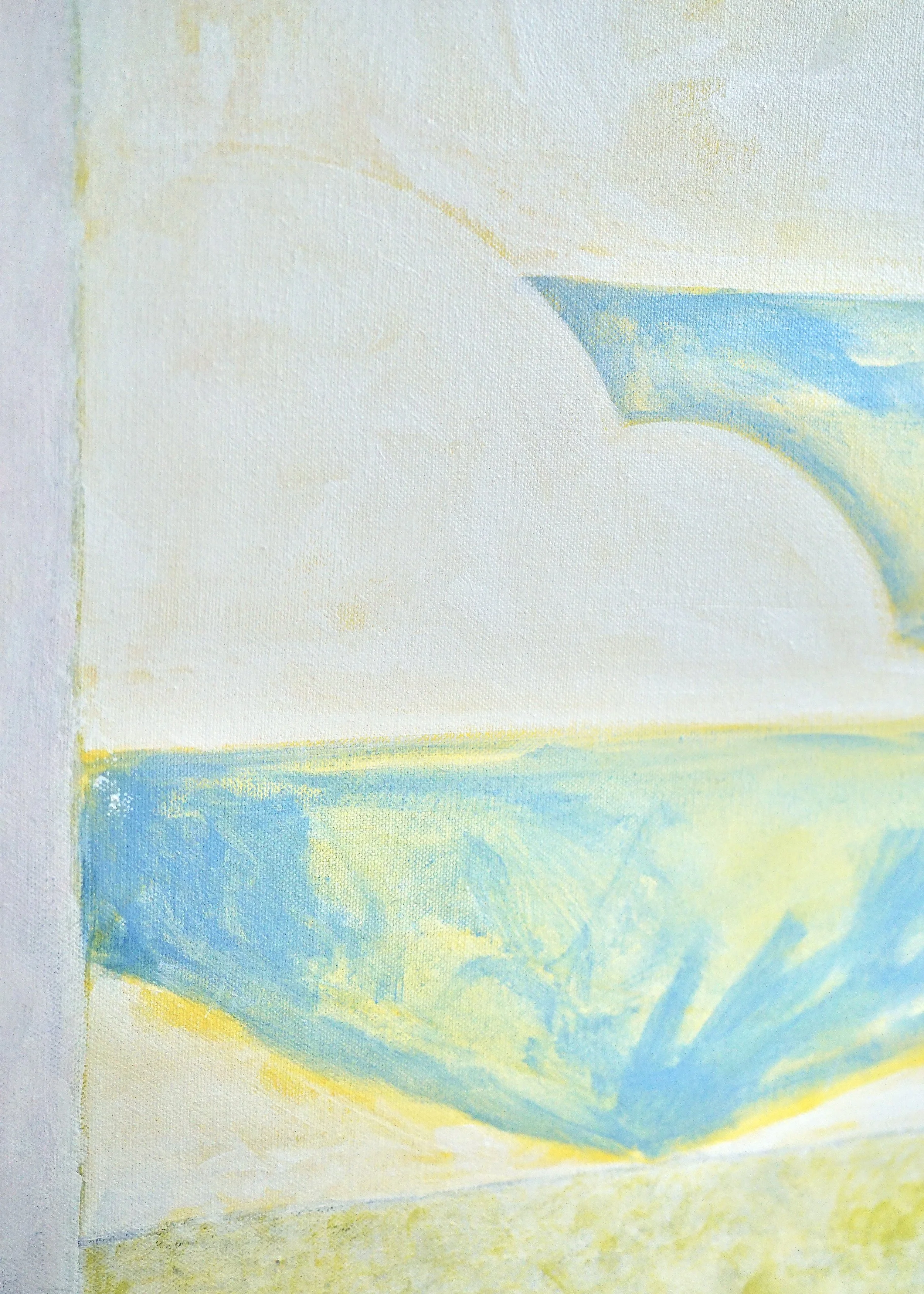 For this painting, I decided to fully embrace my comfort zone and see where it would get me. Unsurprisingly, I landed on the simple landscape, a barrier from the open space, rough brush strokes, and light colors overlapping.